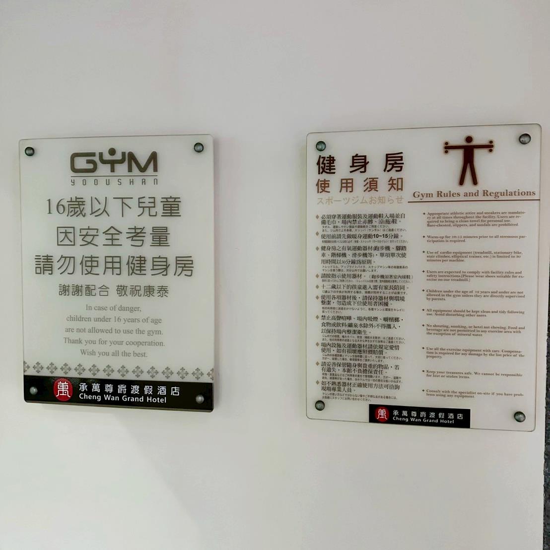 ▲承萬尊爵渡假酒店6樓健身房使用須知示意⤵