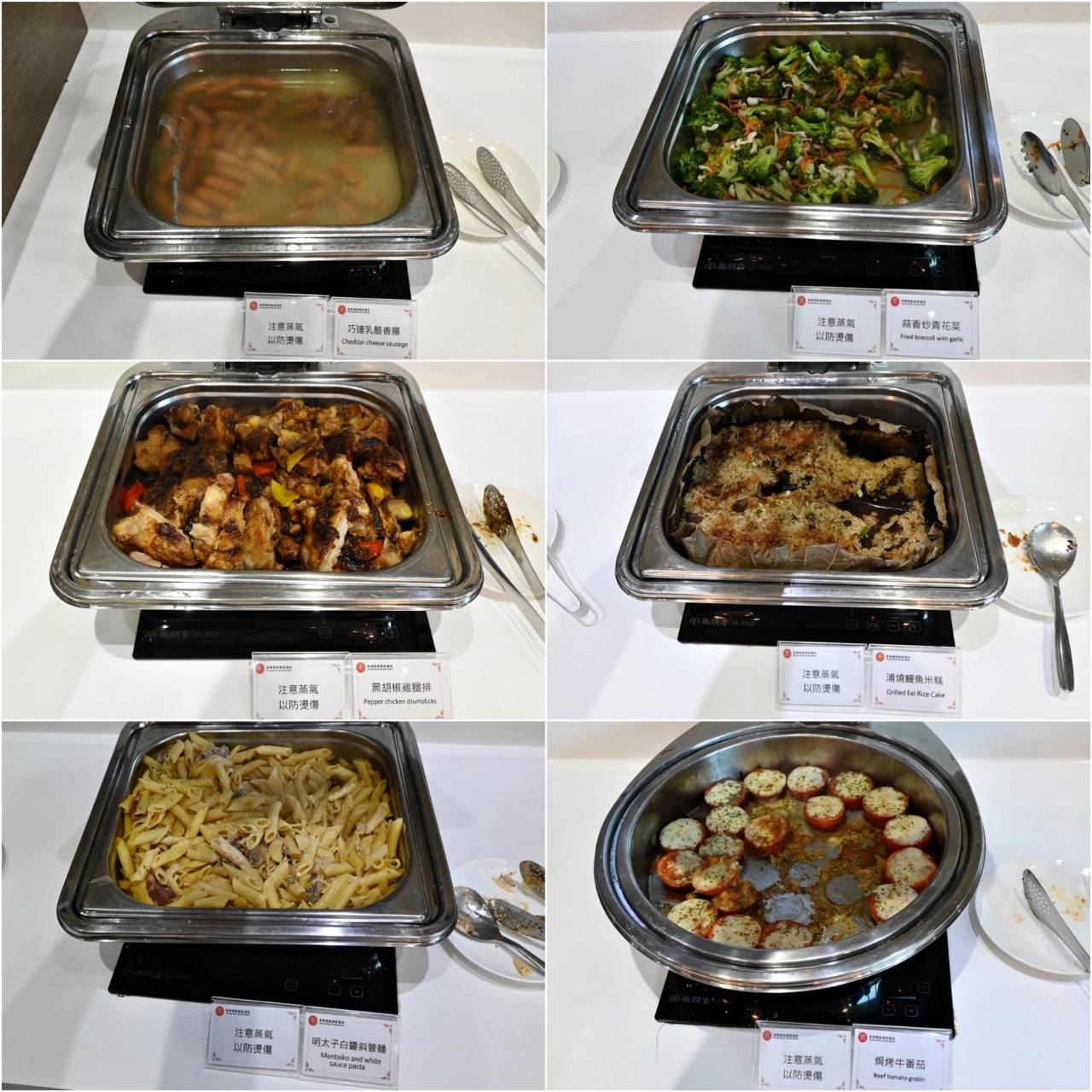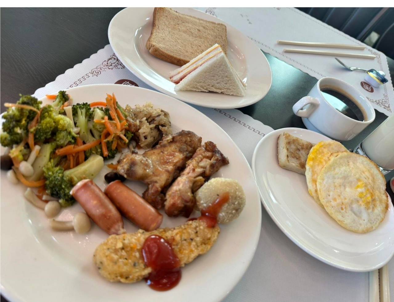 巧達乳酪香腸、黑胡椒雞腿排、明太子白醬斜管麵、蒲燒鰻魚米糕、蒜香炒青花菜、焗烤牛番茄、蜜烤地瓜、埔里紹興爌肉、壽司飯、五榖粥、瓜仔香菇雞湯、素香鬆、紅豆枝、香脆酸菜、香菇麵筋、百香漬、鹹菜筍、信義梅汁番茄、黃金辣蘿蔔、鹹鴨蛋、甜酒豆腐乳、芝麻球、檸檬雞柳條、番茄醬、格子薯餅、洋蔥圈、烤麵包機、歐式麵包、小可頌、金麥吐司、白吐司、草莓泡芙、花生蛋糕、石頭巧克力、葡萄乾、多力多滋、莎莎醬、肉鬆三明治、火鍋三明治、水果(柳丁、紅龍果、香蕉)、綜合生菜、石蓮花、紅橡木生菜、紫高麗菜絲、綠捲生菜、玉米粒、小豆苗、小黃瓜、碧玉筍、養樂多、原味優酪乳、統一布丁、胡麻醬、芥子和風醬、千島醬、凱薩醬、南瓜籽、起司粉、黑橄欖、酸豆、洋蔥粒、五彩球、巧克力脆片、原味玉米脆片、日月潭紅茶茶葉蛋、蘿蔔糕、荷包蛋、黑糖小饅頭、梅花肉圓、芋泥包、叉燒包、番茄醬、辣椒醬、蒜蓉醬、醬油、蔭油膏、烏醋、蒜泥、蔥花、埔里香菇芋頭米粉、飲品機(供應現萃包種青茶、現萃包種奶綠、紅豆拿鐵、現萃蜜香紅茶、現萃蜜香奶茶、熱奶泡)、咖啡機(供應拿鐵咖啡、卡布奇諾、可可歐蕾、熱牛奶、美式咖啡、濃縮咖啡、奶茶)、無糖豆漿、米漿、葡萄汁、百香果汁、冰牛乳等多道佳餚與風味飲品(依現場供應為主)。