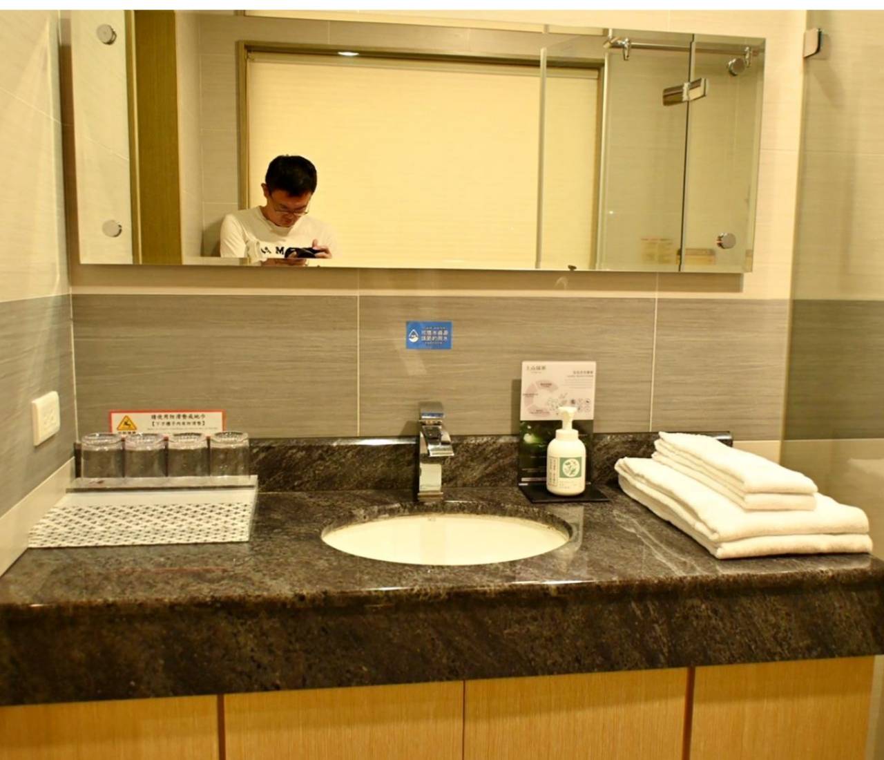 ▲入住承萬尊爵渡假酒店11樓豪華四人客房,衛浴配備淋浴,洗手台則獨立設置⤵