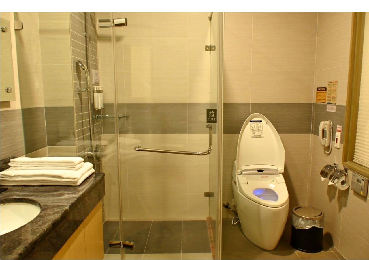 當日入住11樓豪華四人客房,衛浴配備淋浴與免治馬桶,洗手台則獨立設置。另設景觀陽台,俯視窗外景致盡覽無遺。