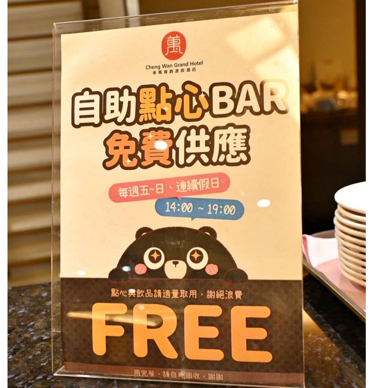 ▲承萬尊爵渡假酒店1樓巴黎香榭沙發區自助點心BAR、開放時間⤵