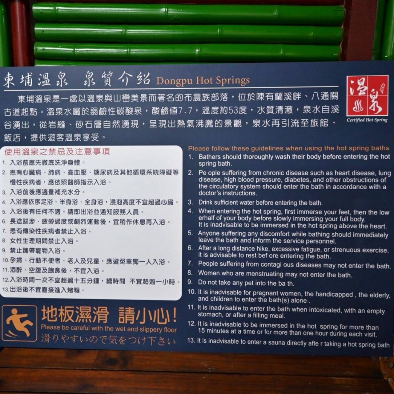 ▲東光行旅露天大眾泡湯池告示牌⤵