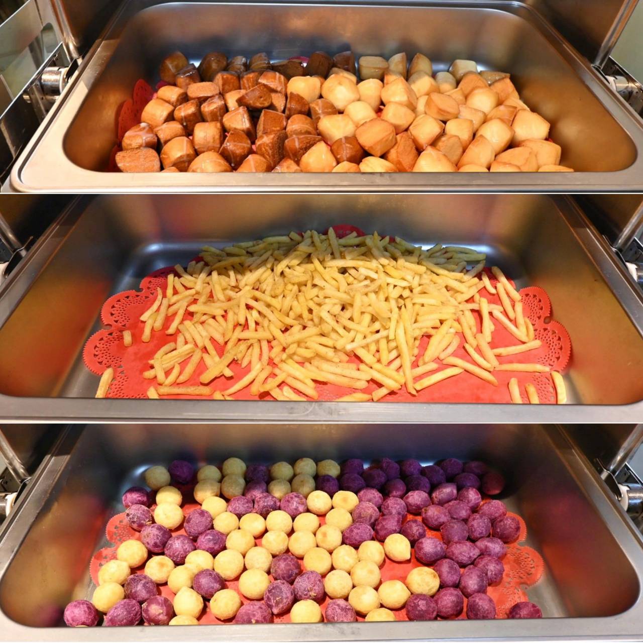為下午2:00至下午4:00。咖啡機右側備有聯興阿里山清香烏龍茶茶包、日月潭精選紅茶茶包及熱美祿與熱奶茶,並供應炸的小饅頭、薯條、地瓜球、罐裝餅乾、紅茶、柳橙汁與檸檬水