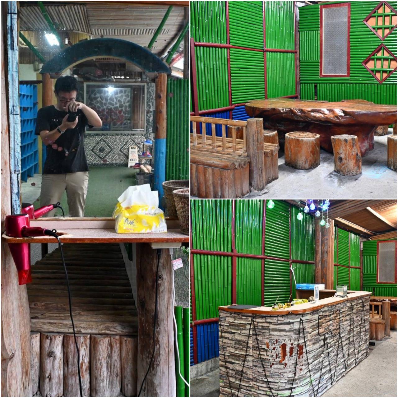 ▲東光行旅露天大眾泡湯池一隅,備有休息區、吹風機與衛生紙⤵