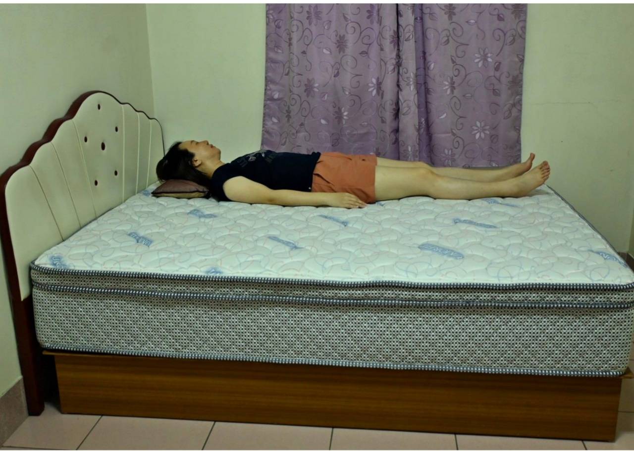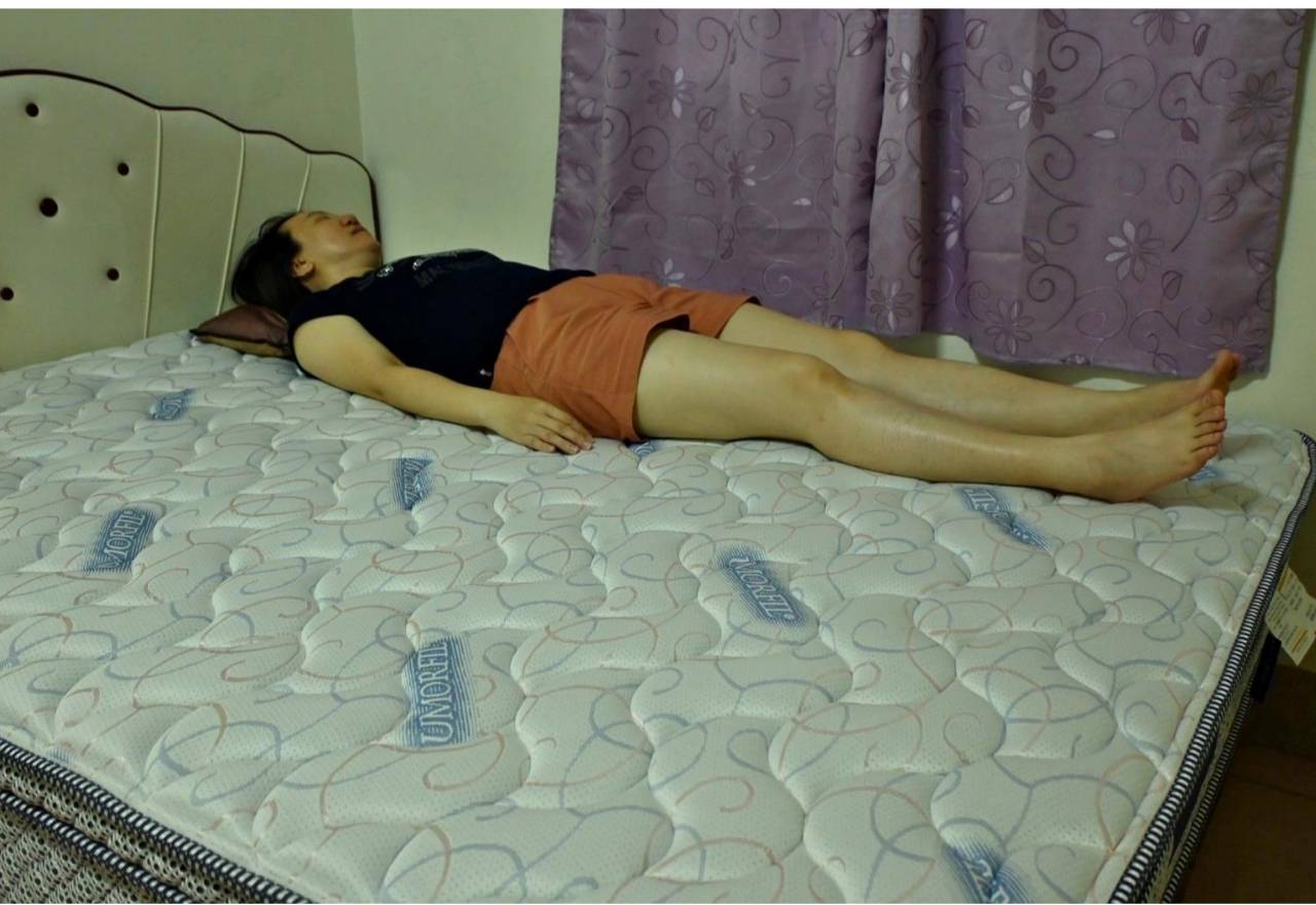 3、妹妹平躺或側睡時,手臂不因受壓而感到緊繃或不適,整體躺感柔軟包覆,軟硬適中,身體各部位均得到平衡承托。